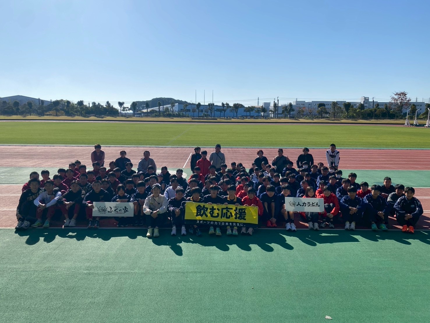 11月29日(土)佐賀県鳥栖市・鳥栖市陸上競技場にて、現役のころからサポートしてくださっている㈱福山様協賛のもと、ジャンプアップ教室を開催しました!鳥栖市は私の故郷であり、鳥栖市陸上競技場は小学生のころから陸上教室に参加したり、大会に出場していた競技場です。当時は赤土のグラウンドでしたが、昨年の佐賀国民スポーツ大会を機に、全天候型グラウンドに整備されました。中学生のころは早くタータンの競技場にならないかな…と思っていたので、今の環境がとても羨ましいです!!