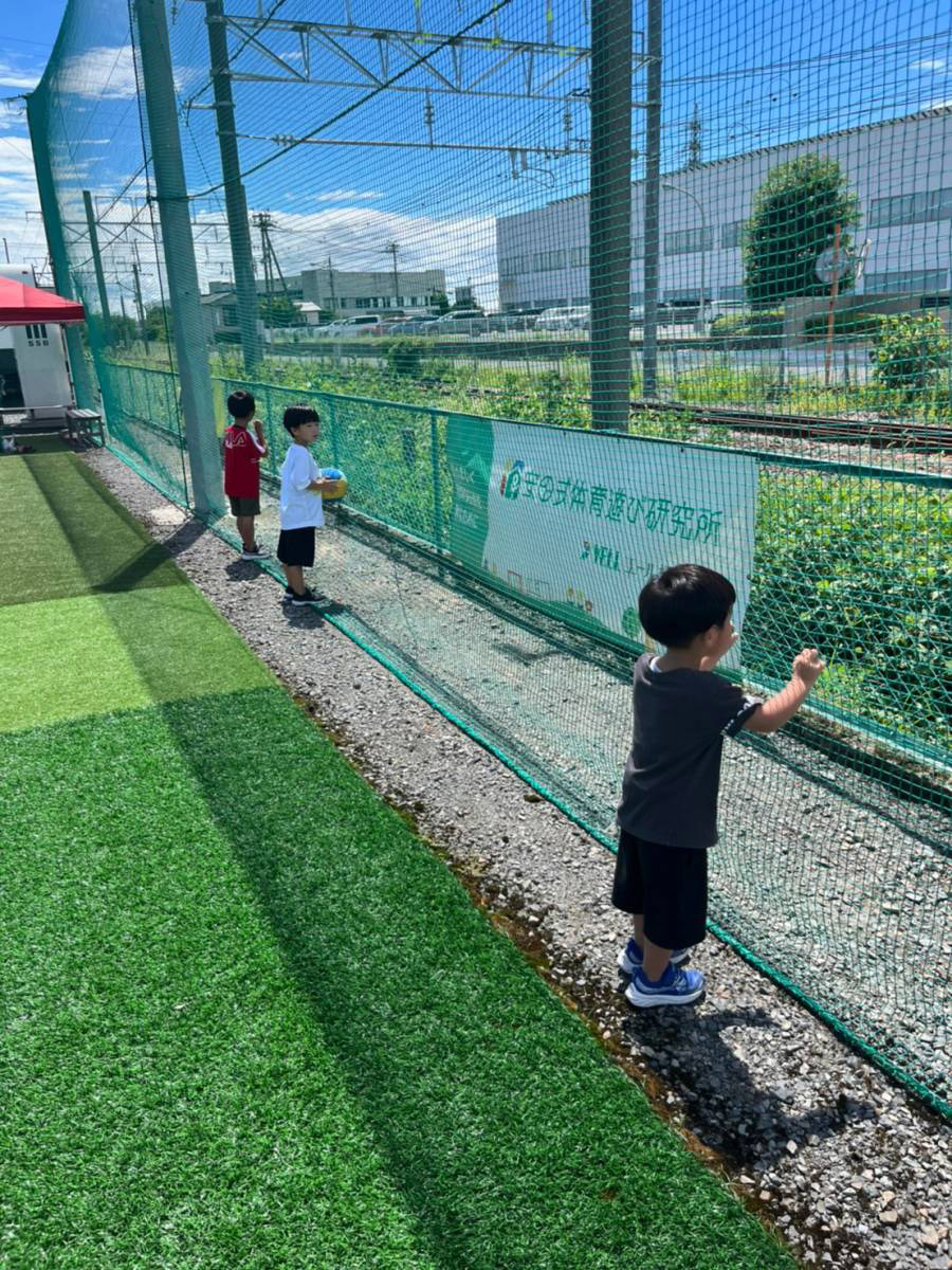 的のボールに当てるのは難しそうでしたが、何回も投げて挑戦していました。